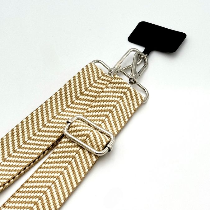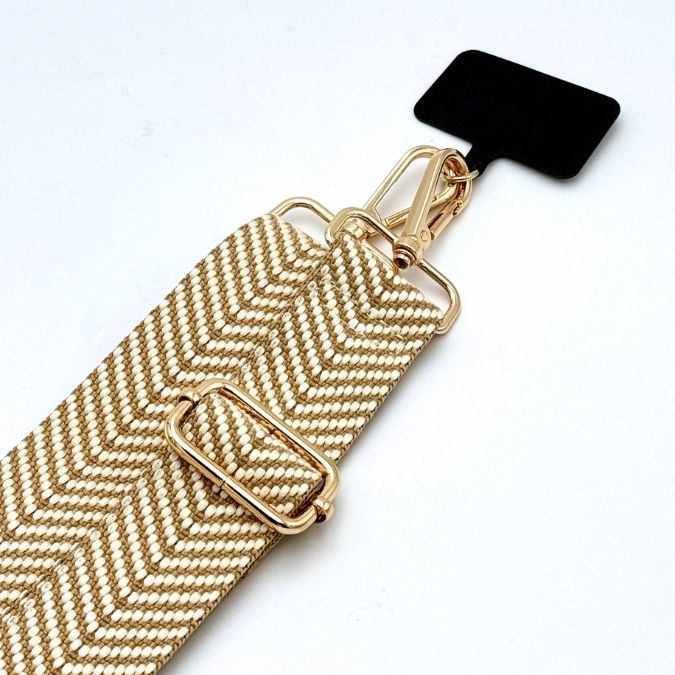 Introducing the Chevron Chic Woven Strap. With its intricate design, this woven strap adds a touch of timeless elegance to your phone or bag.