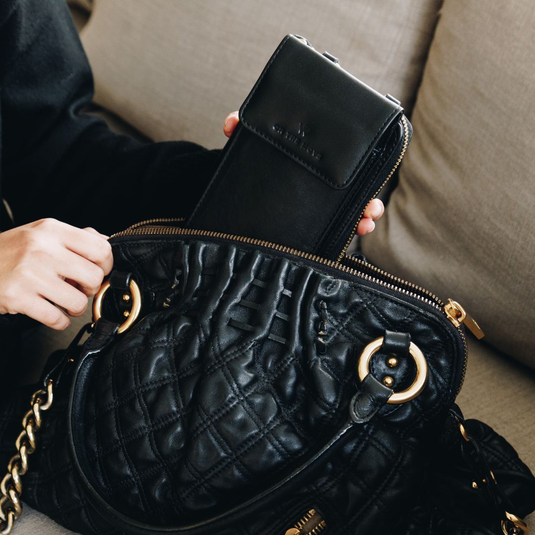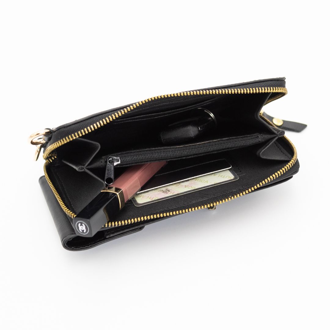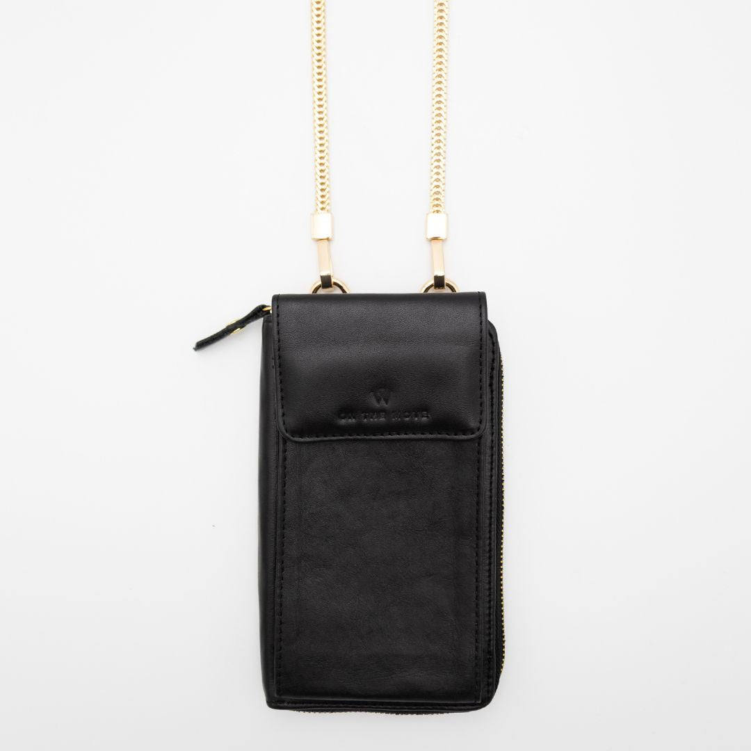 Black Leather Phone Purse Bag (w Gold Fittings)