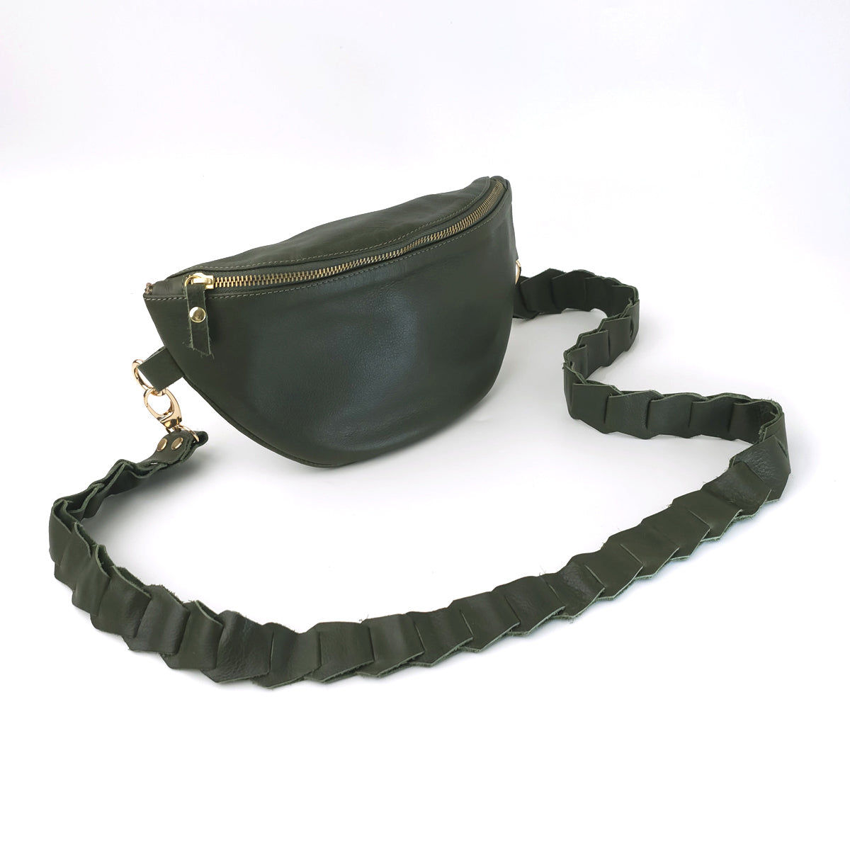 Texas Olive Leather Bum Bag ( W Gold Fittings)